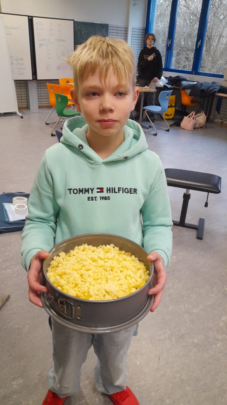 Schülerinnen und Schüler der S-WPF-Gruppe Klassenstufe 7 haben im Herbst Äpfel geerntet. Heute durften sie die Ernte in Form eines selbst gebackenen Kuchens genießen. Beim Schneiden und Schälen der Äpfel gab es noch manche überraschende Momente. Biologisch gezogene Äpfel können schon mal Lebensraum kleiner Tiere sein! Aber die haben mehr Angst vor uns, als wir vor denen haben müssen.