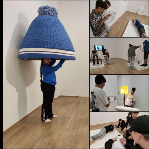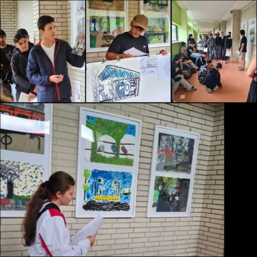 Es wurde spannend, als sich die geladenen Gäste der Klasse 8a im Flur versammelten, um den Präsentationen der Malereien und Zeichnungen der Schüler*innen der Klasse 9a beizuwohnen…